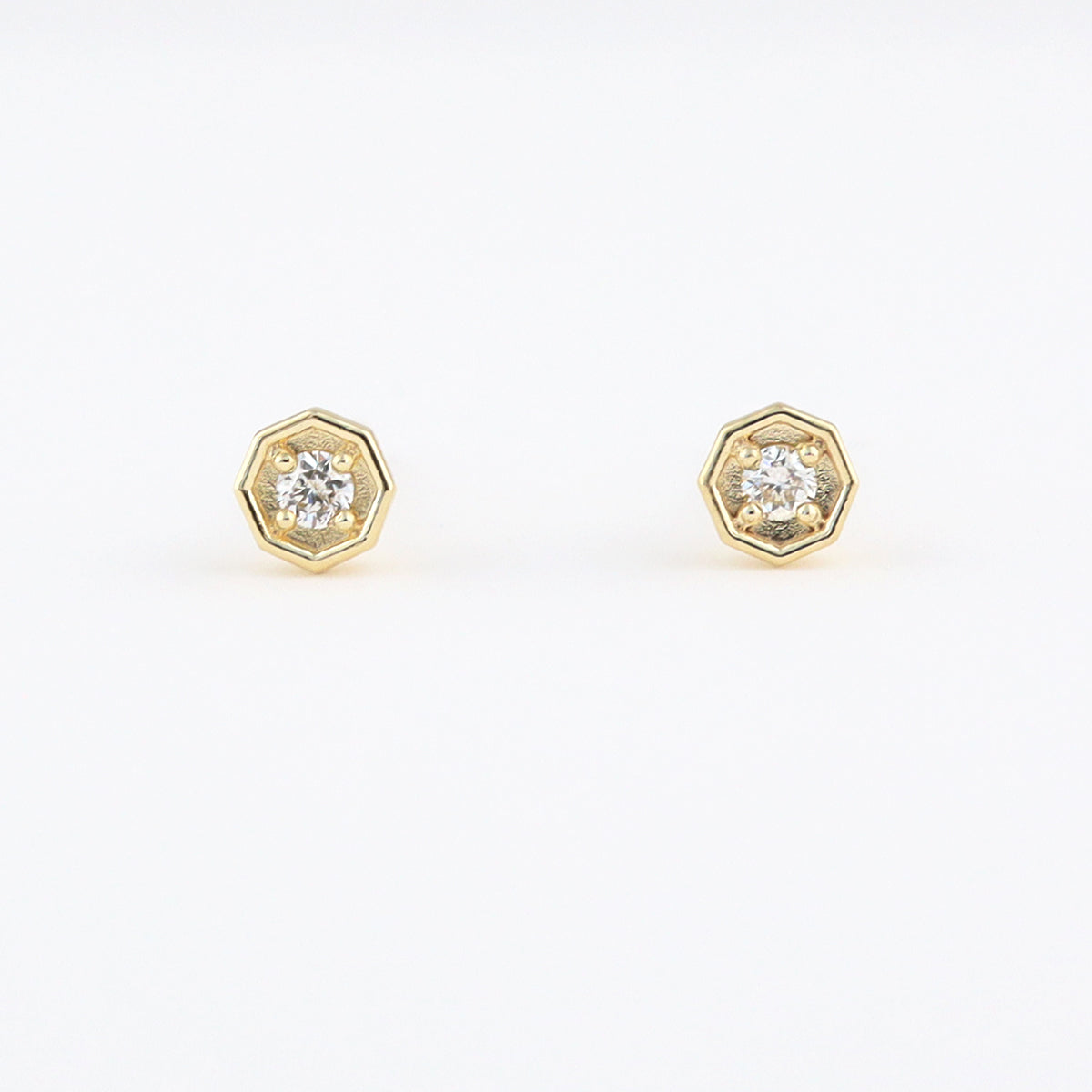 さりげない8角形フォルムと華奢なサイズ感が魅力のダイヤモンドピアス。