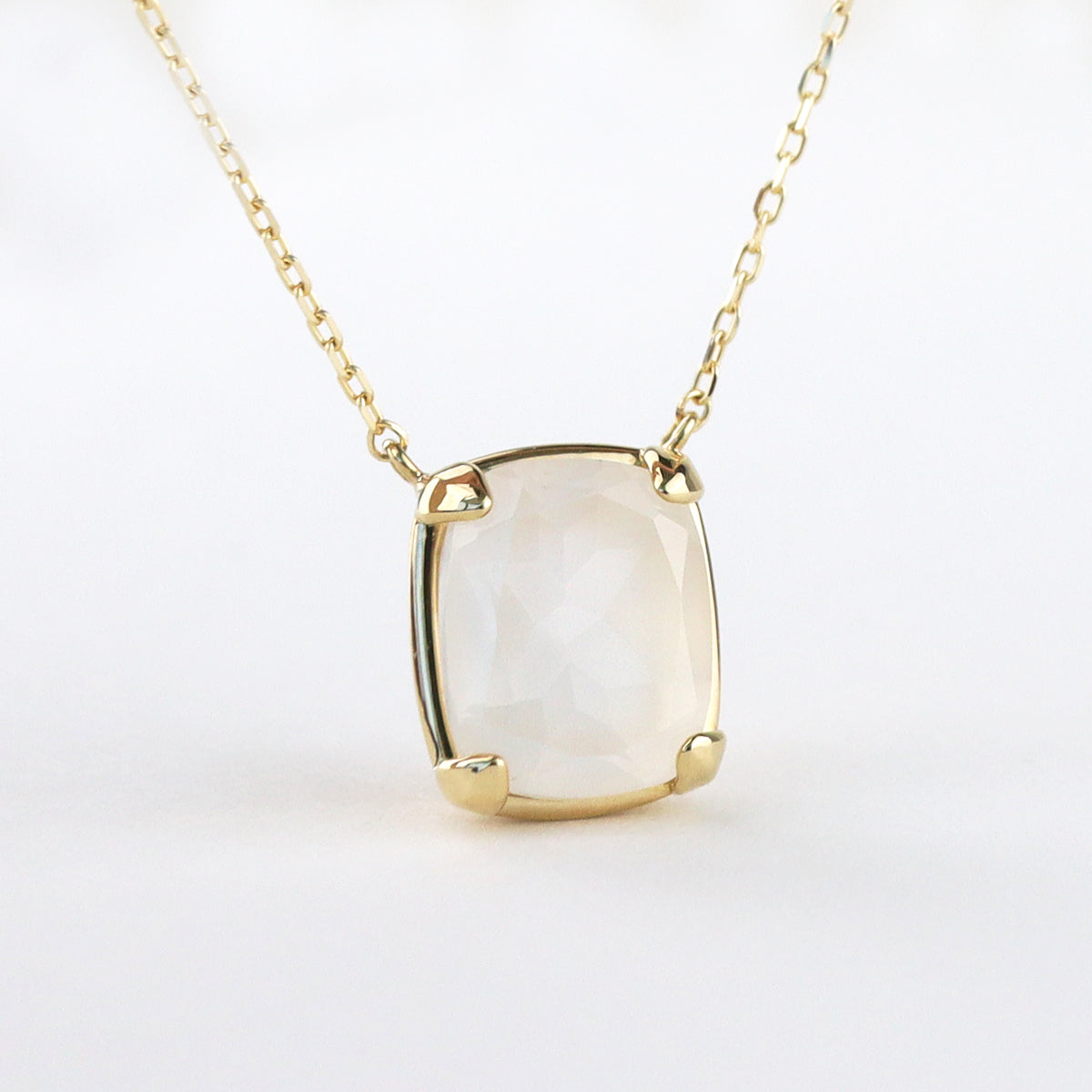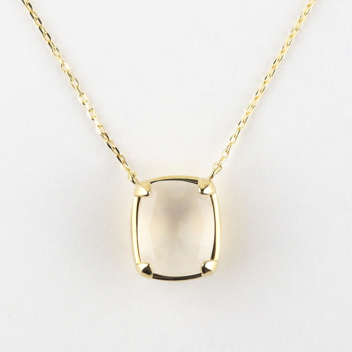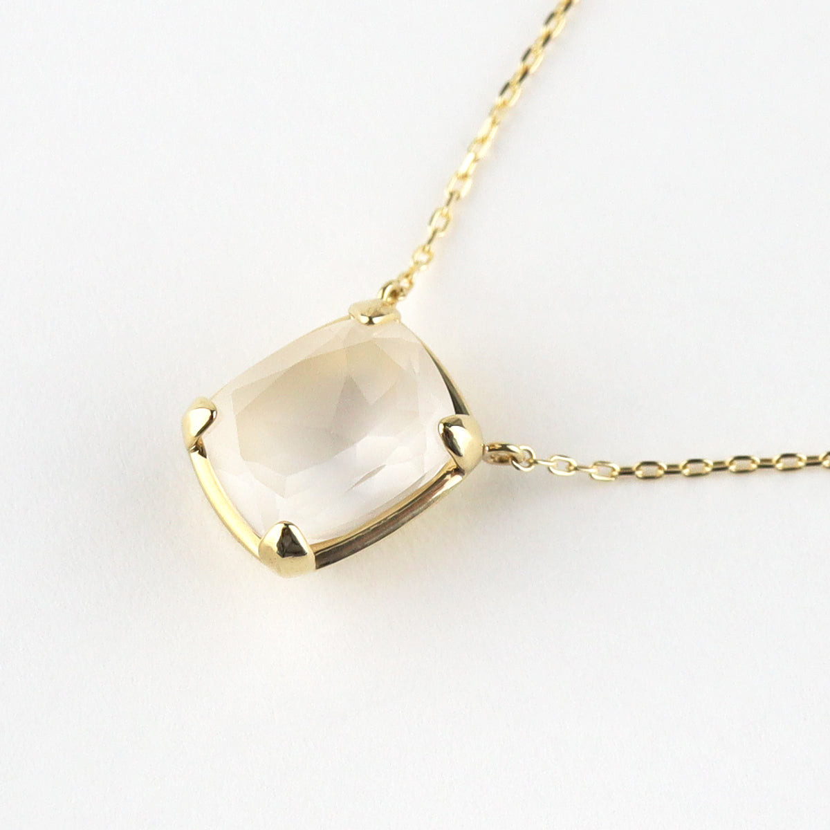 大人の女性の魅力を引き立たせてくれる、モノトーンの天然石ネックレス。天然石は、シャープさと柔らかさのバランスが絶妙なオリジナルのクッションカットに仕上げました。