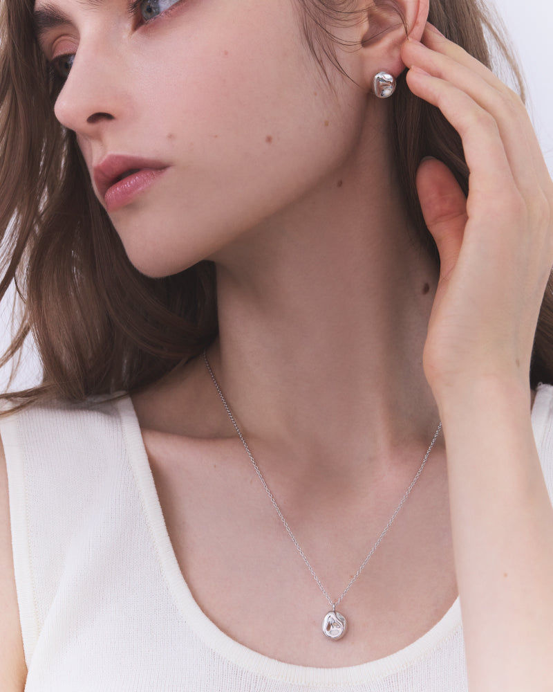 不規則なフォルムと曲線が織りなすユニークなデザインは、光を受けて表情豊かにきらめき、耳元にさりげない個性をプラスします。
