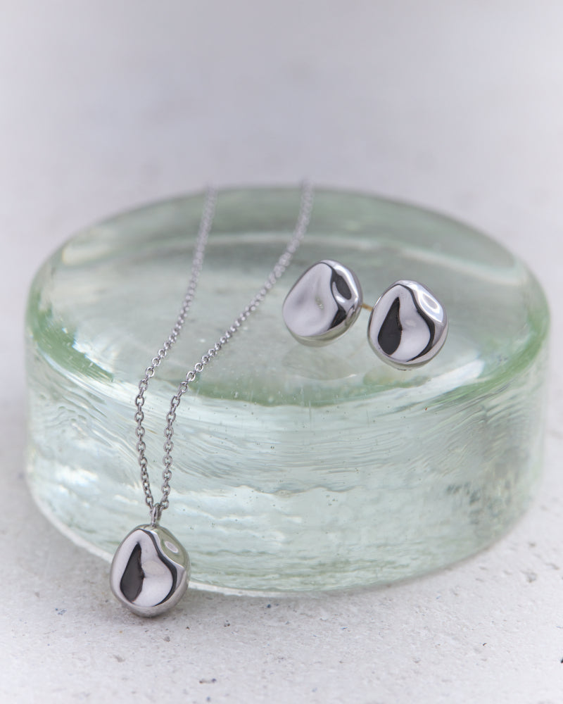 揺れ動く水面の一瞬を切り取ったかのようなスタッドピアス。