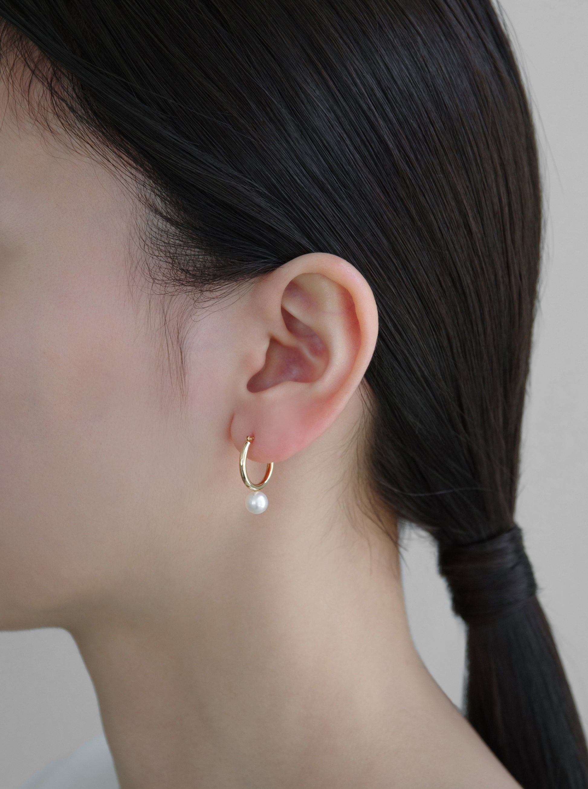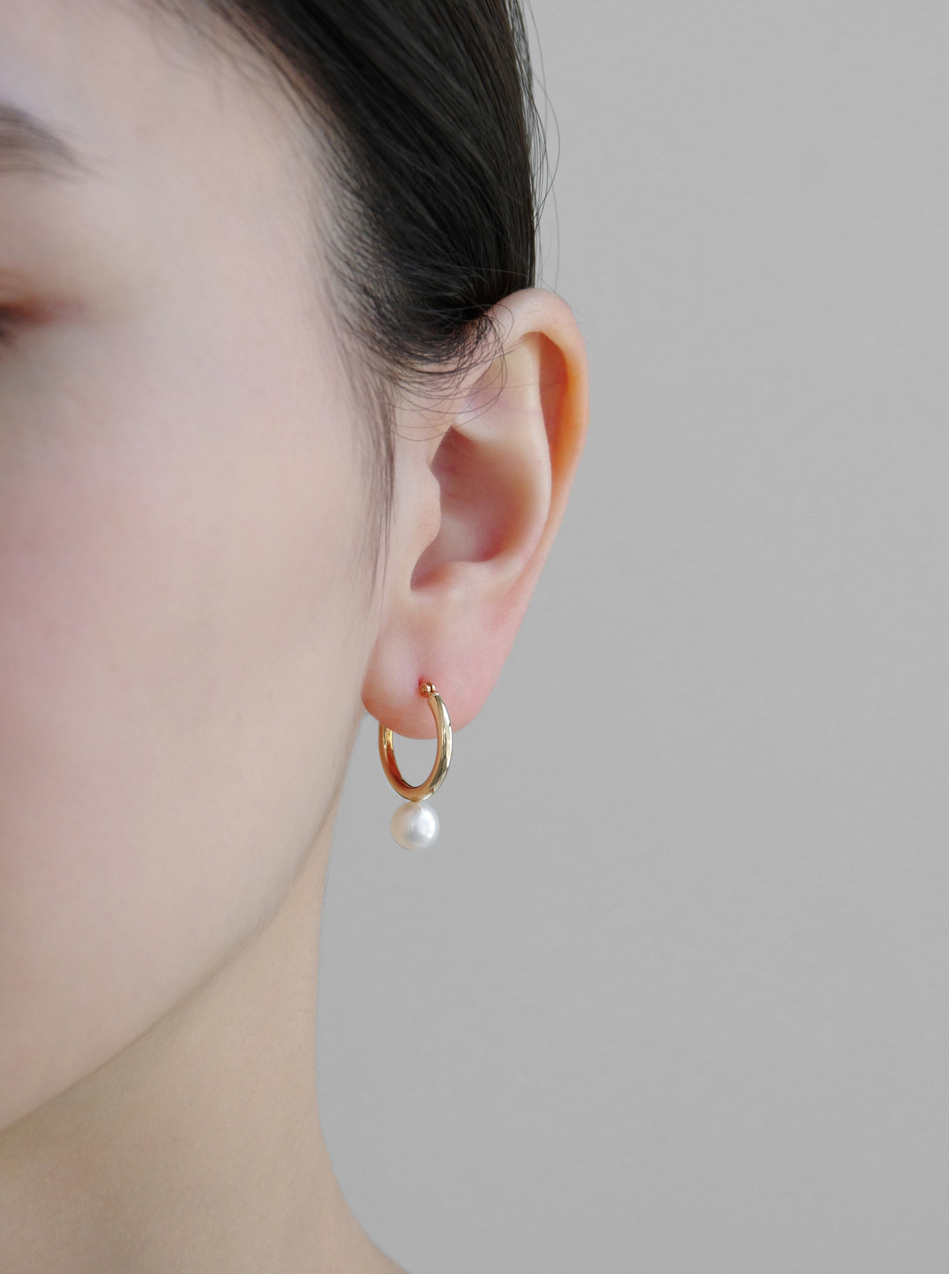 シンプルなフープに艶やかな淡水パールをあしらったピアス。