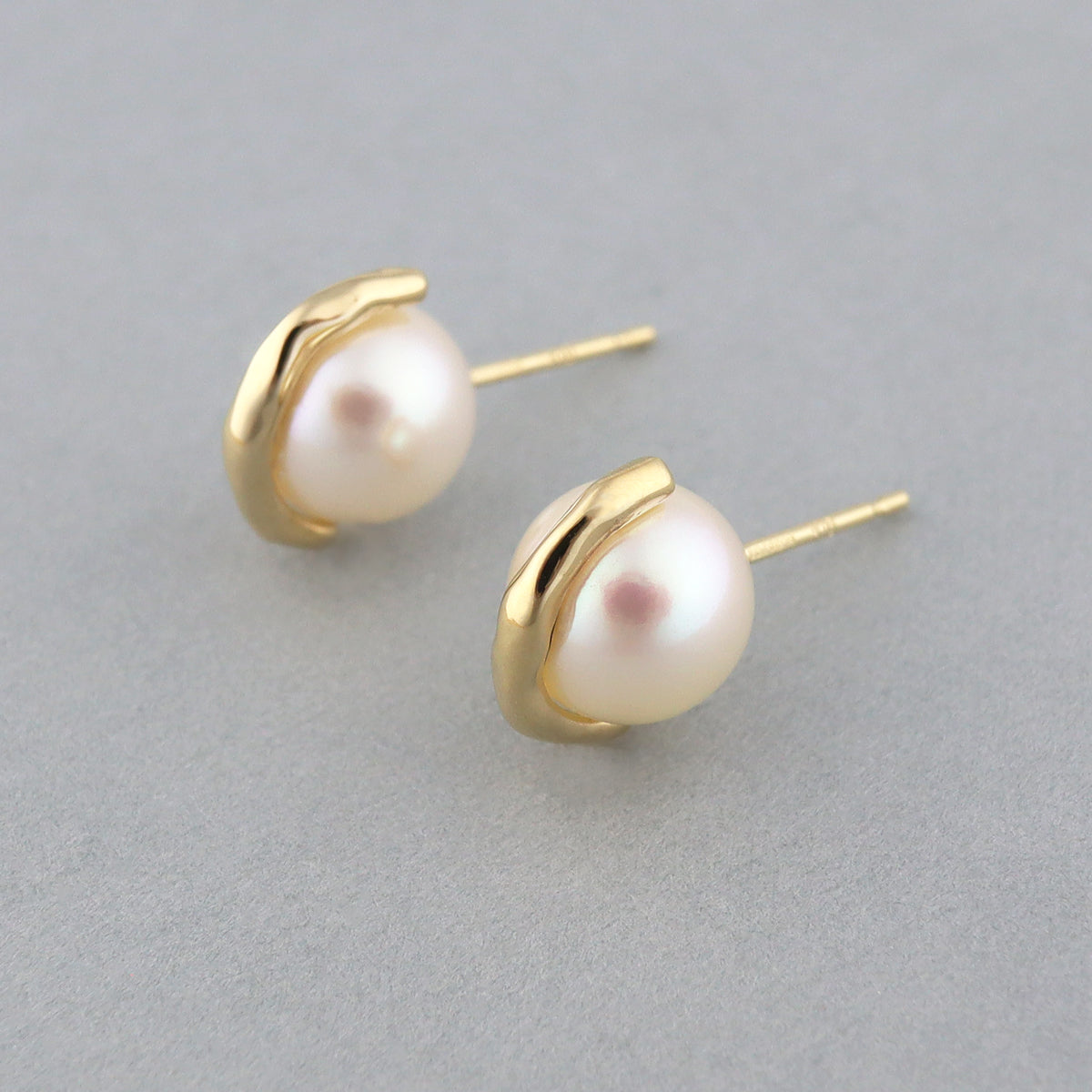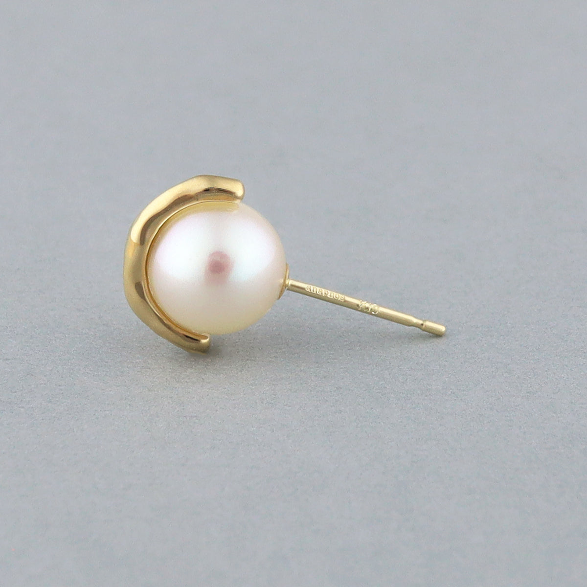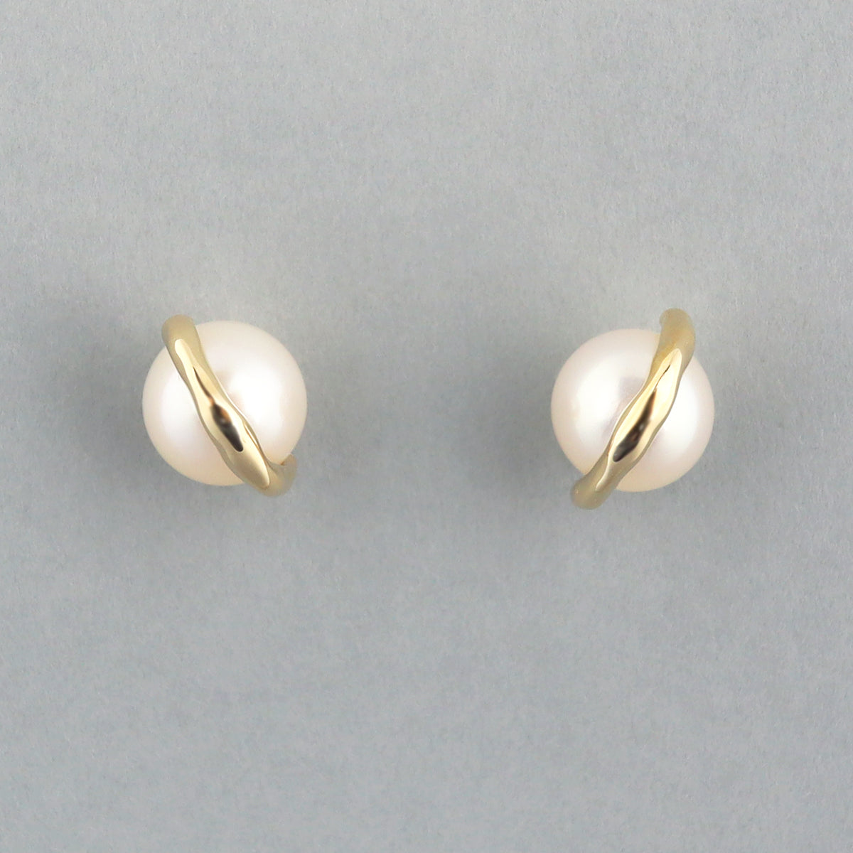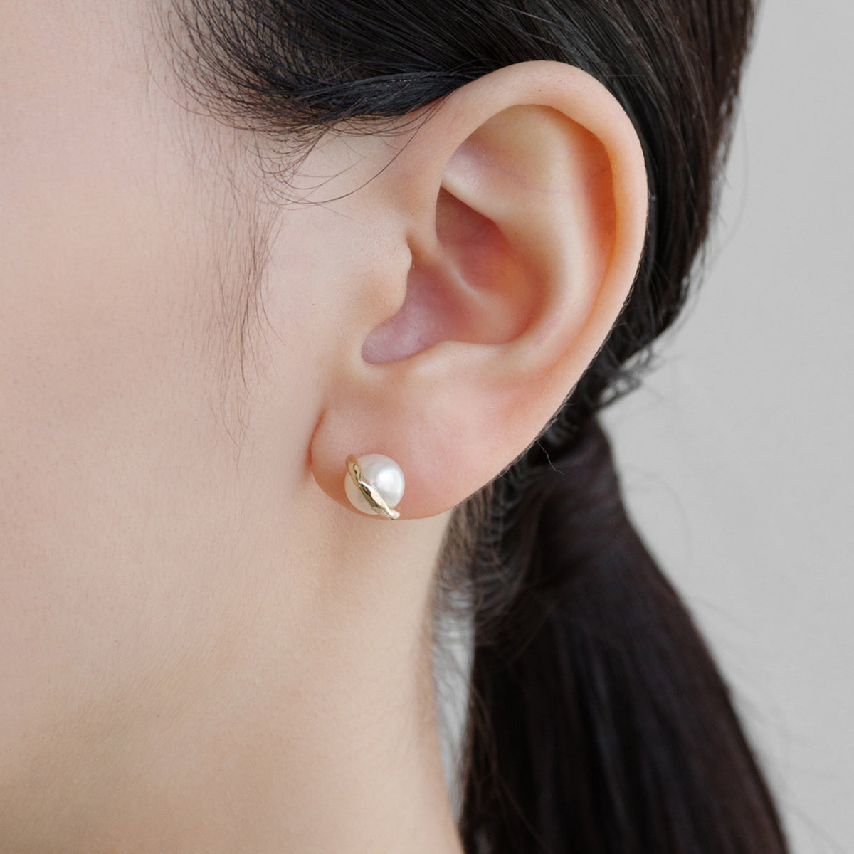 水面のように波打つゴールドの輝きと淡水パールの艶が、上品な耳元を演出します。