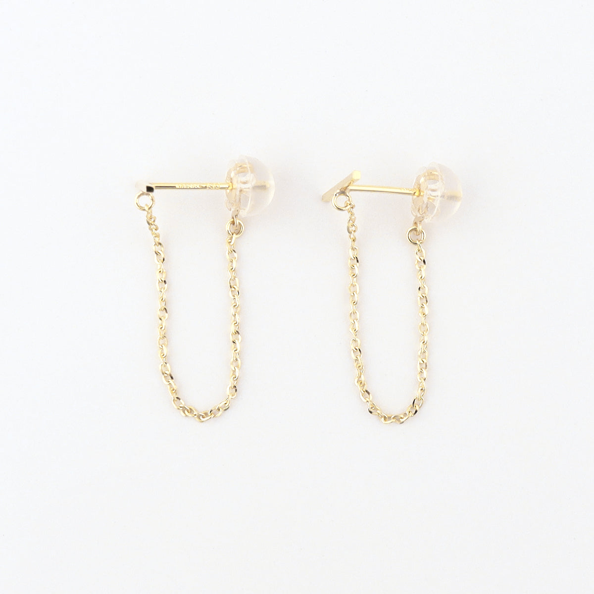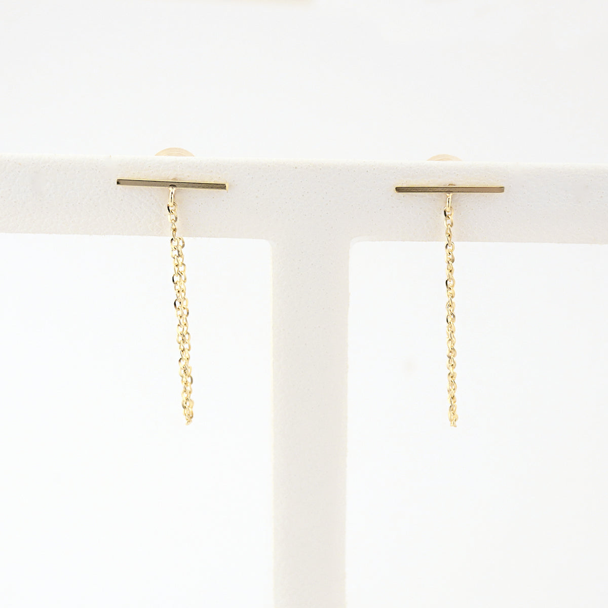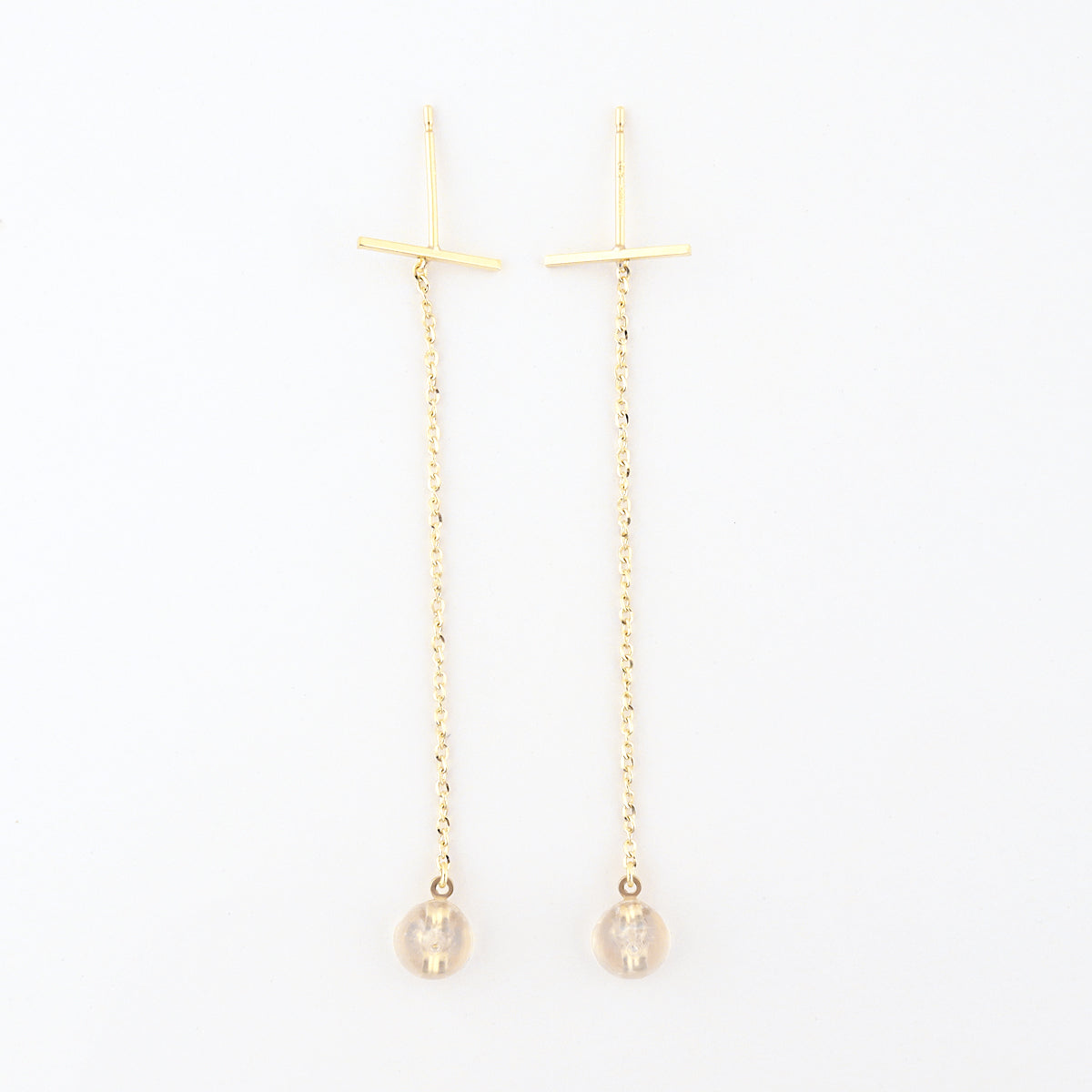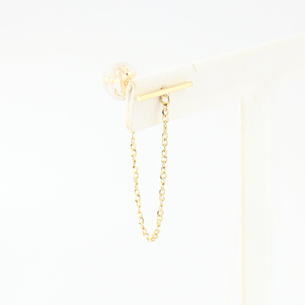 繊細な輝きのチェーンと、艶めくバーのコントラストが美しいピアス。
