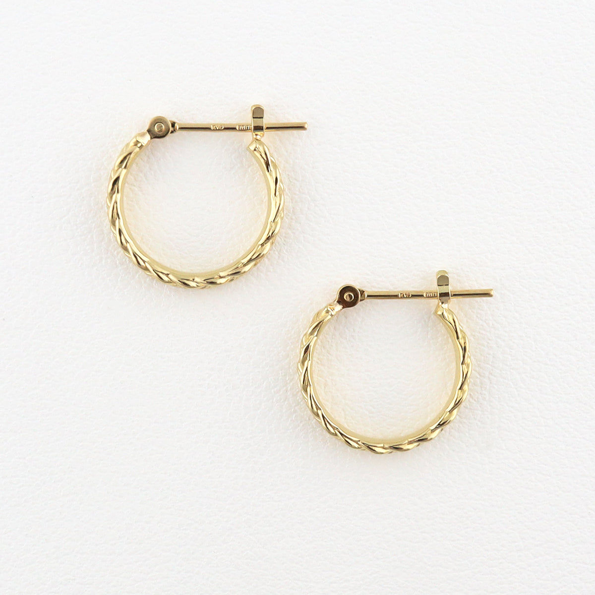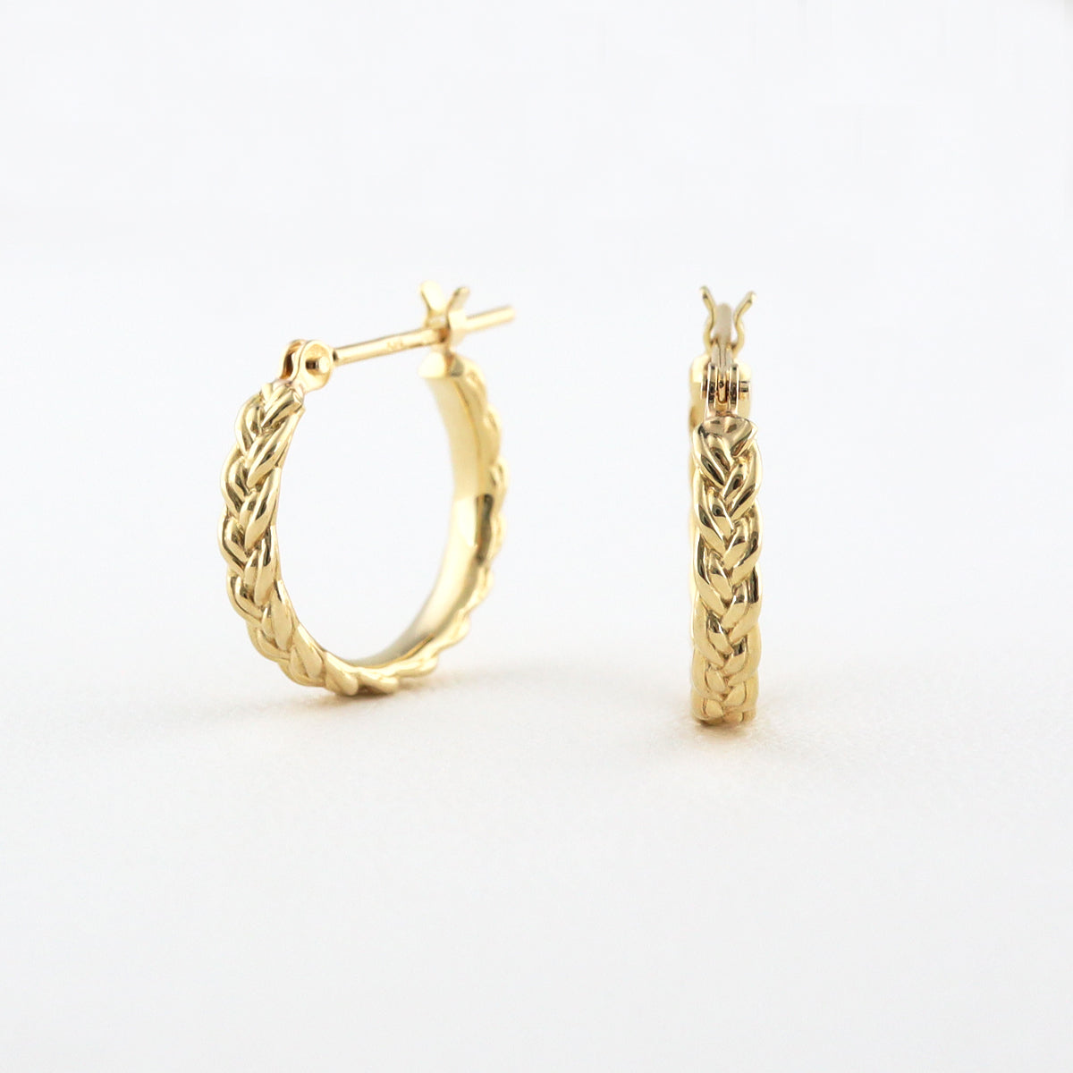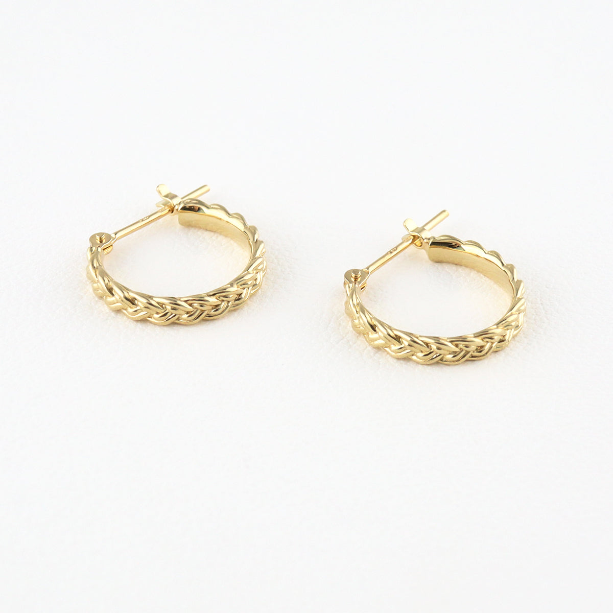 柔らかくふっくらとした編み目の三つ編みをモチーフにしたフープピアス。