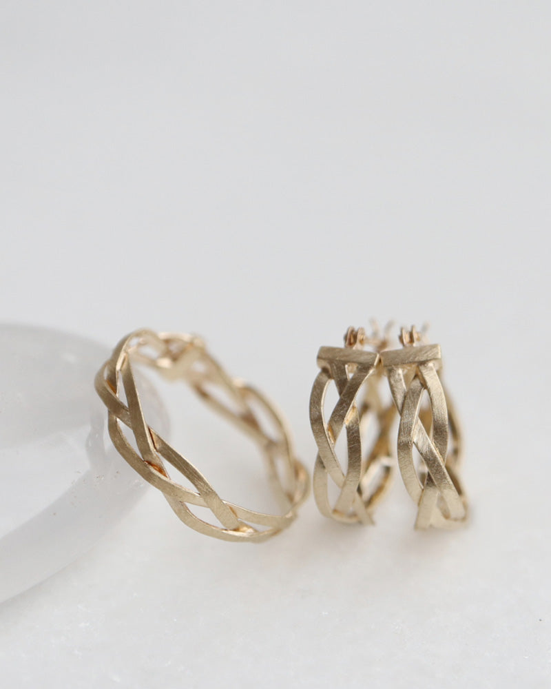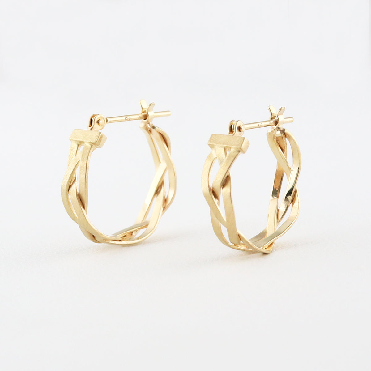 熟練職人の手によって丁寧に編み込まれた、金線を使って仕立てたピアス。