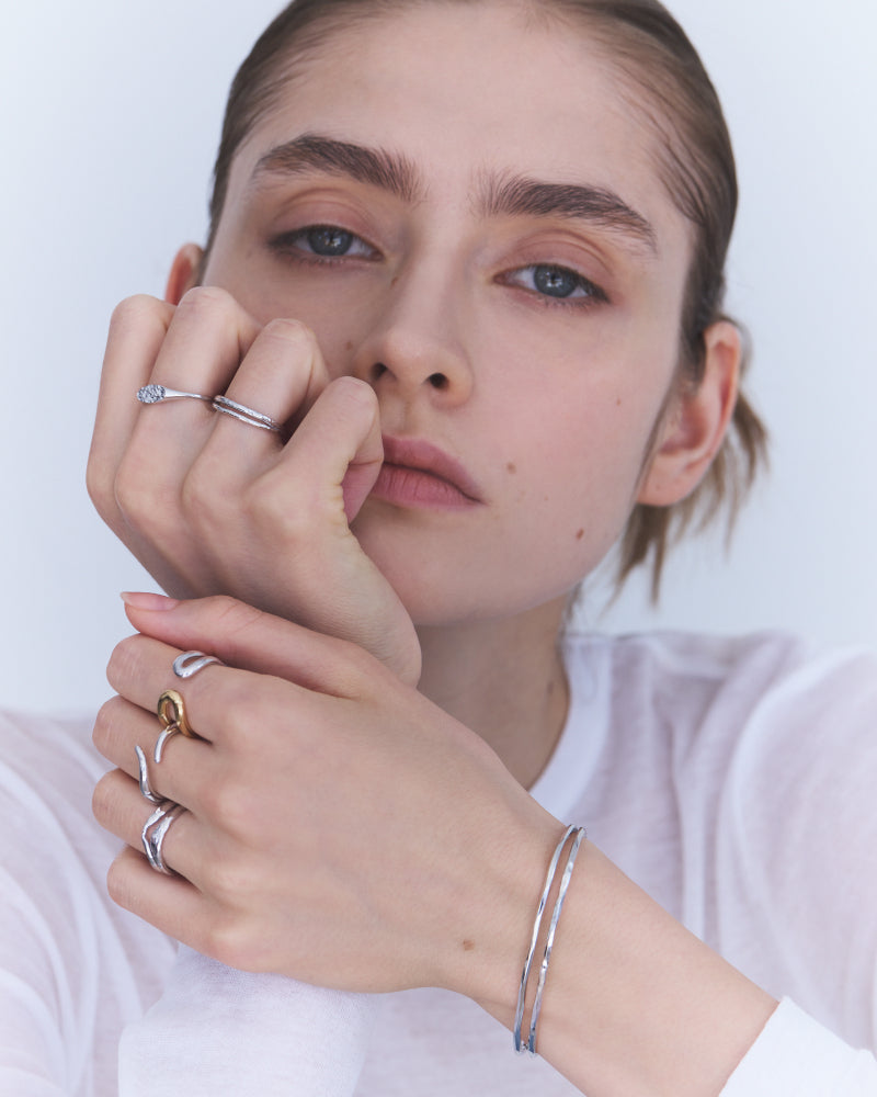 リングとして着ける際は、スリットを前にしたり、クロス部分を前にしたりと、気分に合わせて何通りもの表情をお楽しみいただけます。