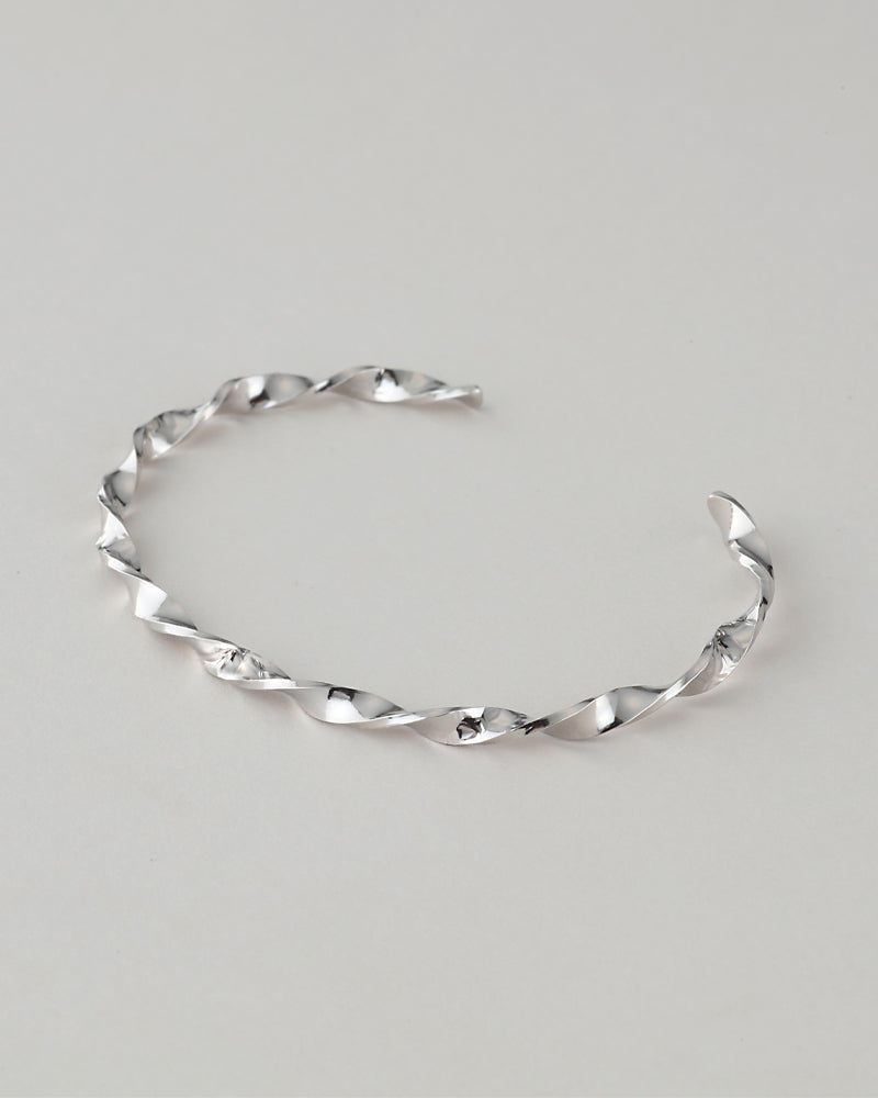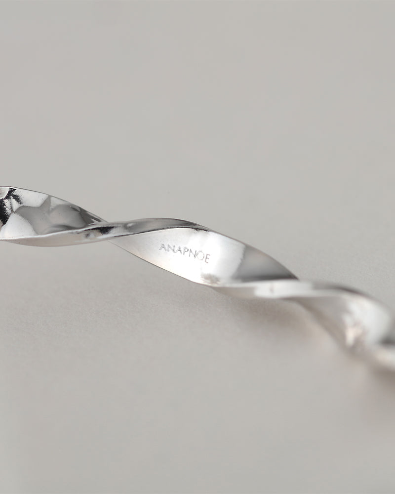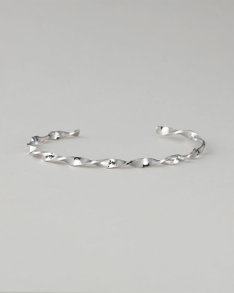 小石の間をせせらぐ水を思わせる、シルバーバングル。