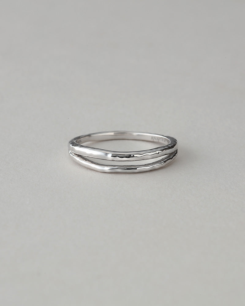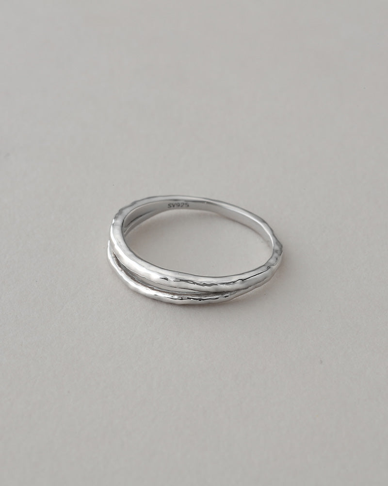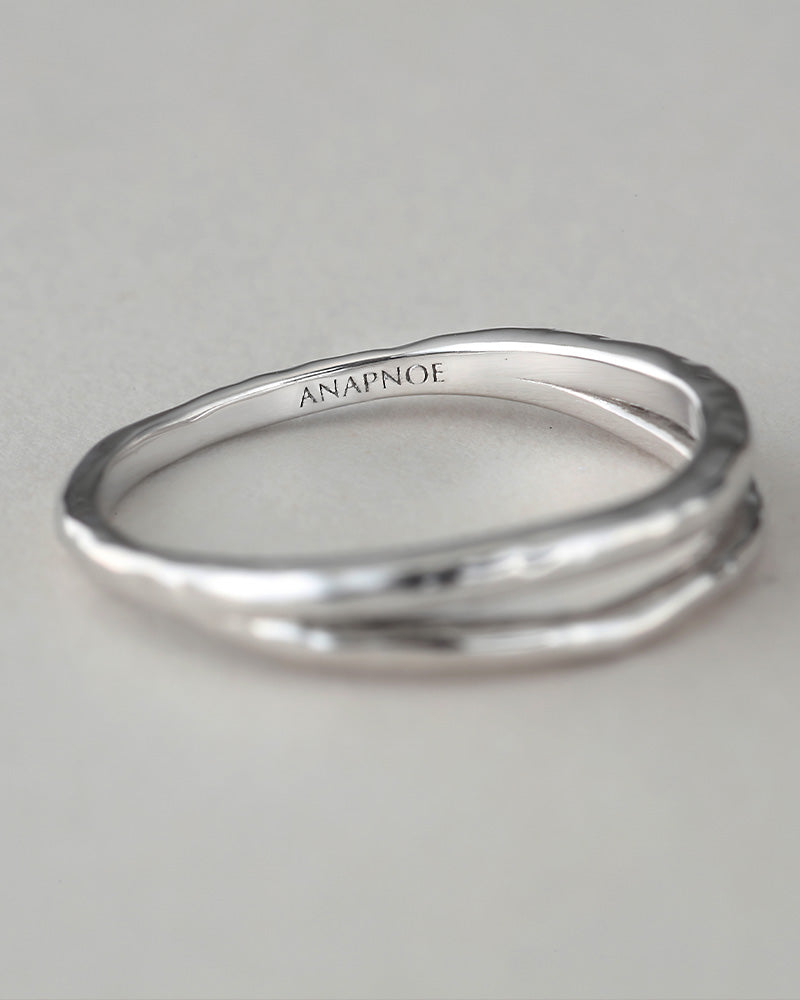 水面に反射する光が煌めく様子を表現した、2連風デザインのシルバーリング。
