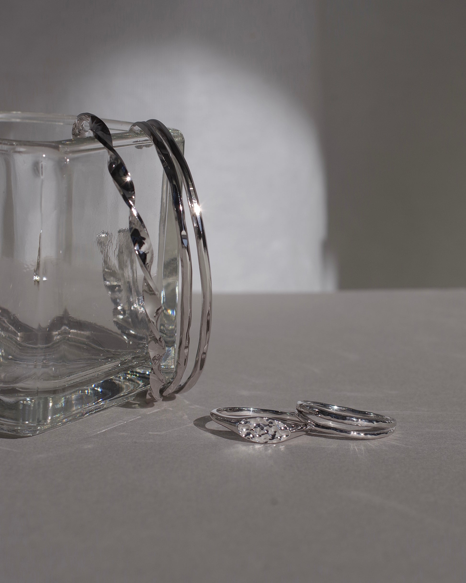 バングルの太さやテクスチャーにこだわり、太さに強弱をつけることでクラフト感あふれる仕上がりに。