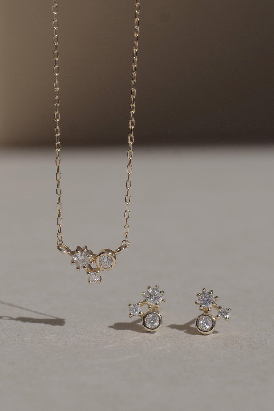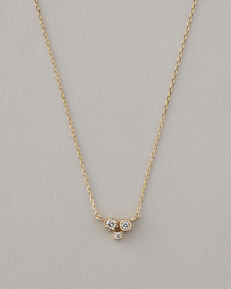 大きさの異なる3石のダイヤモンドをあしらい、装飾やセッティングの細部までこだわることで、ひとつひとつの結晶が持つ個性を表現しました。